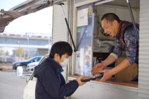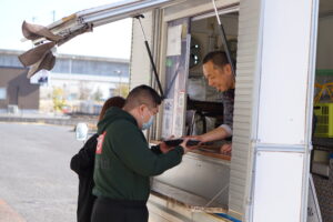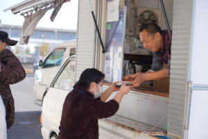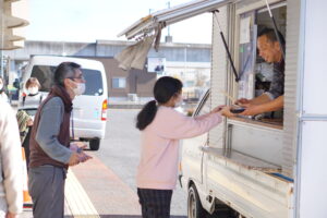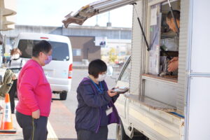 一人ひとりキッチンカーに受取りにいきました。