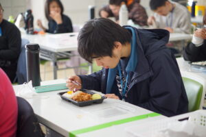 お昼は施設でアツアツ鍋焼きうどんを食べました。